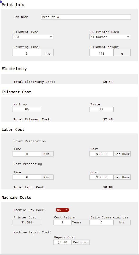 3D Printing Expense Only Calculator$0+$0+https://schema.org/InStockusd3D Design Bros0 ratingsCalculator for determining the cost of a 3D-printed object.Name a fair price:$I want this!FileGoogle SheetsAdd to wishlist New wishlist